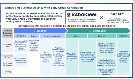 日前,角川在一份财报文档中概述了与索尼未来的合作。其中提到:“我们将通过加强与索尼集团的合作并获得其资金支持,加速知识产权(IP)的创作与全球发行。”