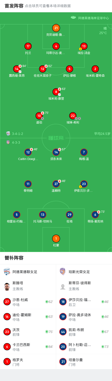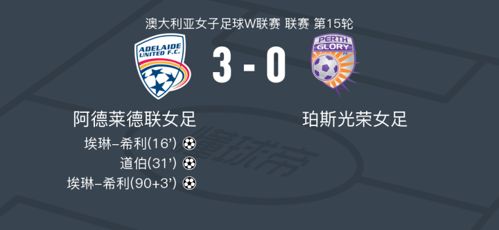阿德莱德联女足3-0大胜珀斯光荣女足,埃琳-希利双响,道伯建功