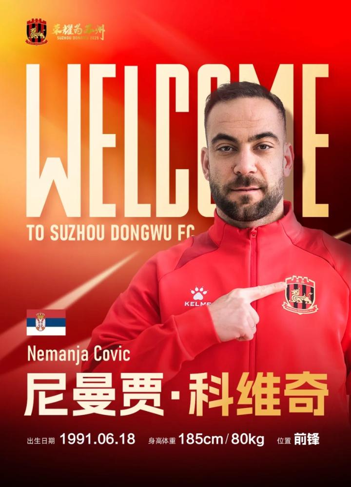 2025赛季 · 公告|欢迎尼曼贾-科维奇、安德烈耶维奇加盟苏州东吴足球俱乐部