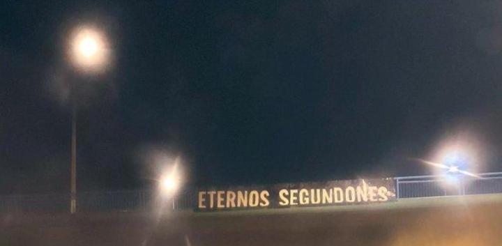 这条横幅背景为黑色,上面用白色大字写着:“Eternos segundones”(永远的老二)
