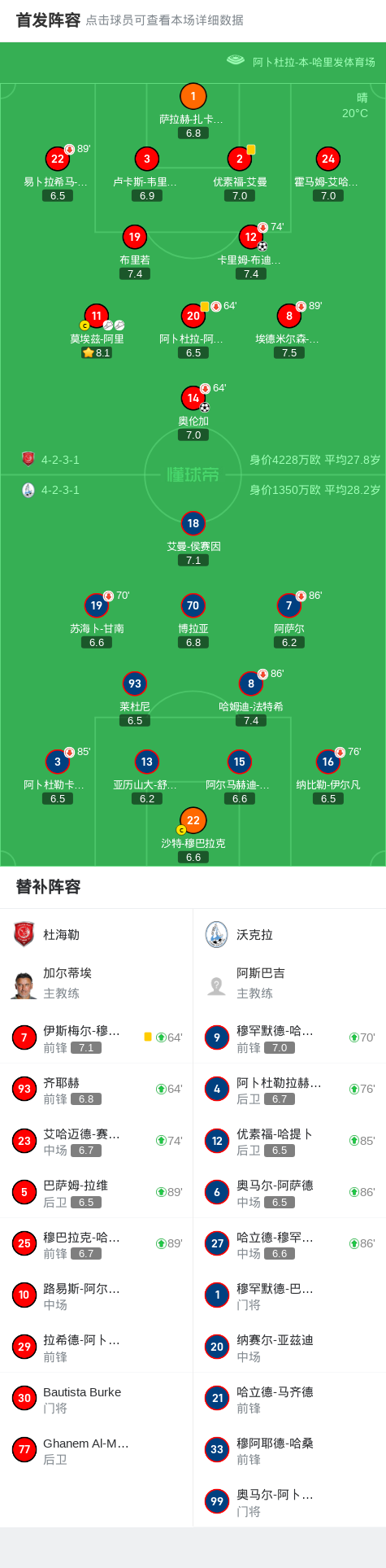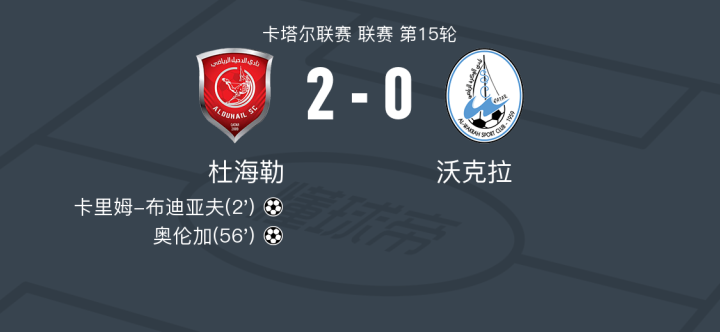在卡塔尔联赛第15轮的较量中,杜海勒坐镇主场迎战沃克拉。比赛中,杜海勒展现了强大的进攻实力。首先,卡里姆-布迪亚夫接到莫埃兹-阿里的精妙传球,成功破门,为球队首开纪录。随后,奥伦加同样在莫埃兹-阿里的助攻下,再次攻破对方球门,扩大了领先优势。最终,杜海勒以2-0的比分战胜沃克拉,取得了本场比赛的胜利。