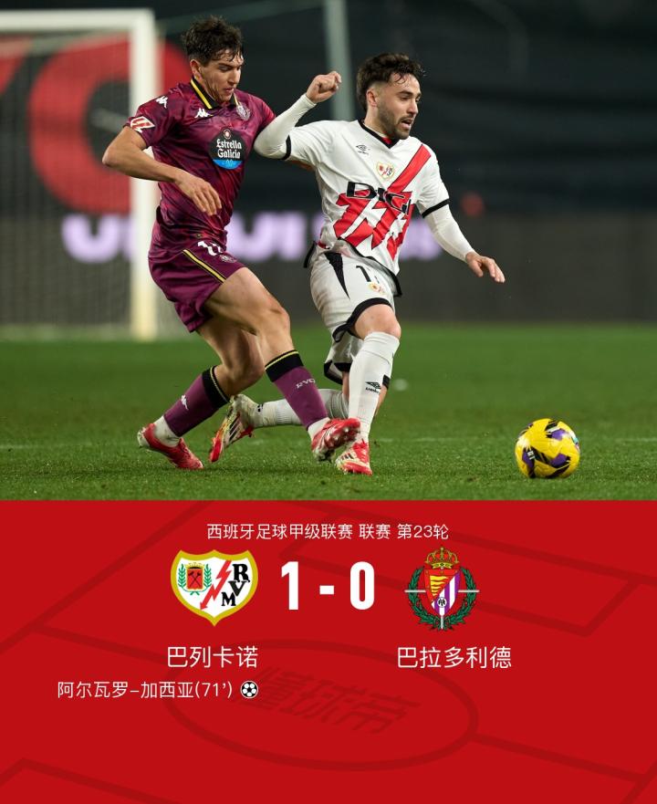 在西班牙足球甲级联赛第23轮的较量中,巴列卡诺坐镇主场迎战巴拉多利德。比赛中,巴列卡诺的阿尔瓦罗-加西亚在德弗鲁托斯的助攻下成功破门,为球队取得领先。最终,巴列卡诺以1-0小胜巴拉多利德,捍卫了主场荣耀。