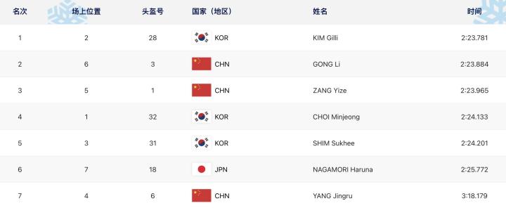 除了三位中国选手,决赛中还有韩国队的崔珉桢、金桔里、沈锡希以及日本队的长森遥南。