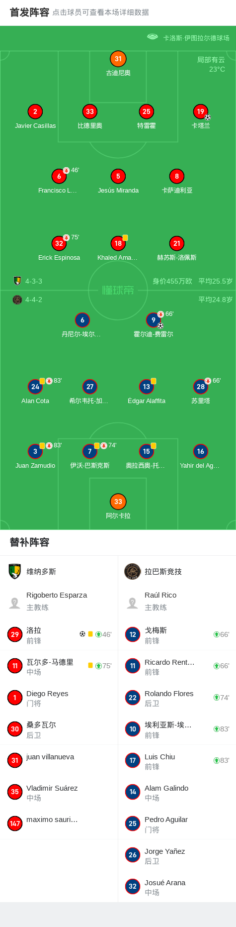 维纳多斯2-1逆转拉巴斯竞技,洛拉、卡塔兰破门