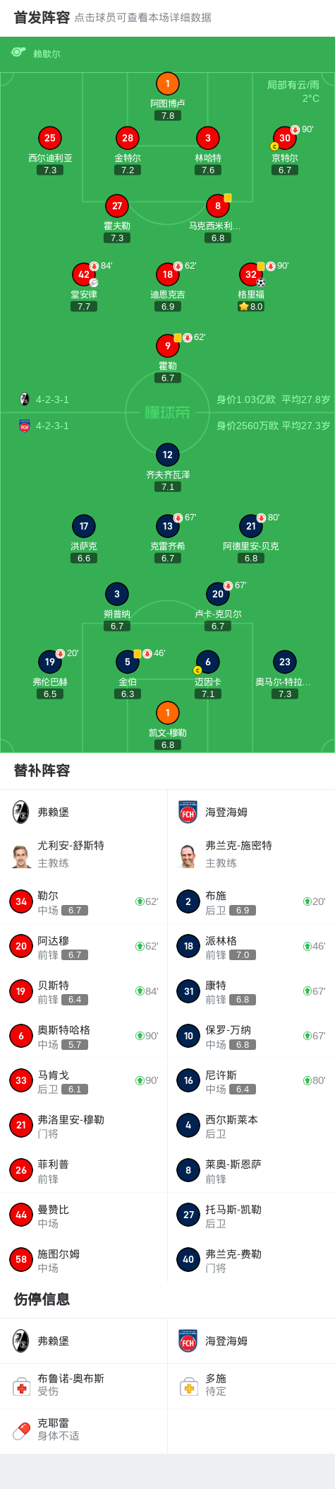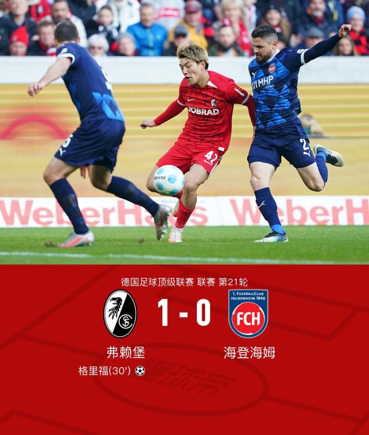 弗赖堡1-0海登海姆迎两连胜,堂安律助攻格里福致胜