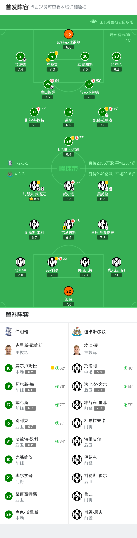 纽卡客场3-2伯明翰晋级,莱尔德闪击,威洛克双响