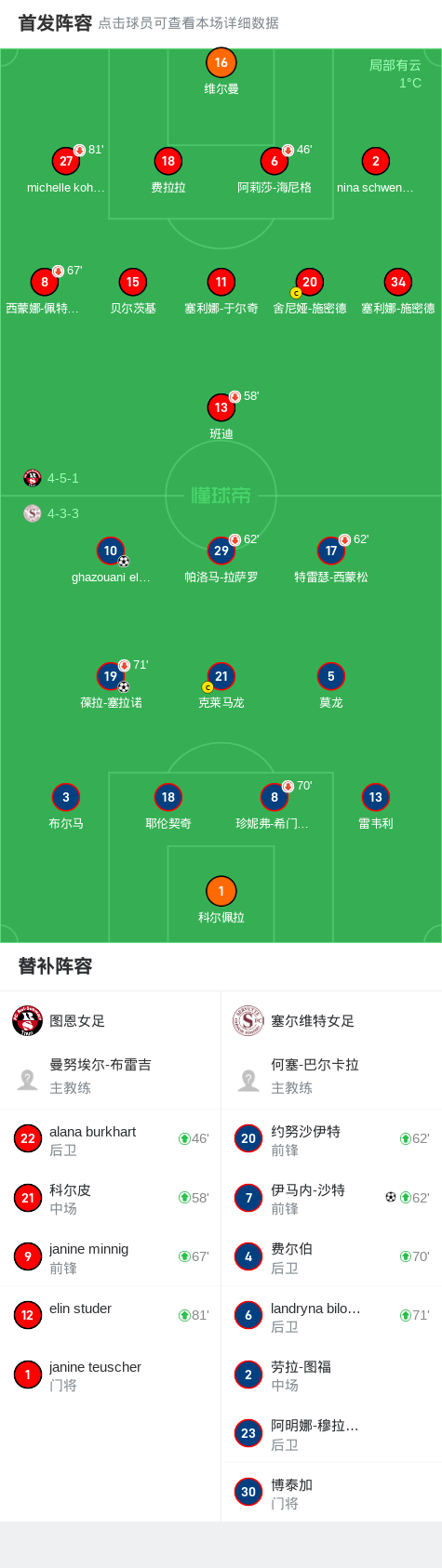 塞尔维特女足3-0大胜图恩女足取瑞士女超5连胜,伊马内-沙特、葆拉-塞拉诺破门