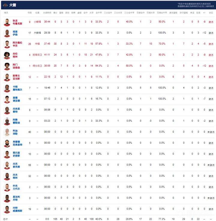 休斯顿火箭申京30分8板3助,杰伦-格林24分3板6助,阿门20分7板5助。