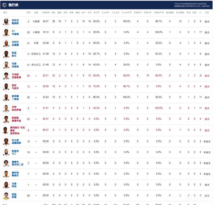 达拉斯独行侠安东尼-戴维斯26分16板7助,马克斯-克里斯蒂23分2板2助,欧文15中4得13分2板6助;