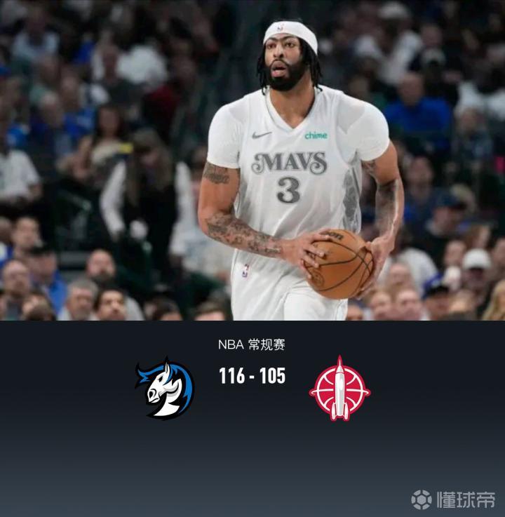 独行侠116-105送火箭6连败,浓眉首秀26+16+7&第三节伤退
