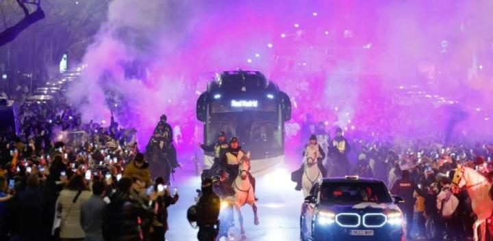 场面梦幻,皇马球迷在德比前点燃焰火并欢迎球队的到来小科爱足球 @懂球帝2025-02-09 08:39在马德里德比的比赛前,皇马球迷在伯纳乌球场外热烈迎接球队大巴。早在比赛开始的几个小时前,现场就已聚满了期待已久的球迷。当皇马大巴沿着孔查-埃斯皮纳大道驶来时,整个场面达到高潮。球迷们高举围巾,点燃烟火,高喊口号,以最热烈的方式为安切洛蒂的球队加油助威。这场德比不仅关乎荣耀,更可能决定西甲榜首归属,因此,伯纳乌球场内外的气氛都已经燃至顶点。最终,双方以1-1的比分握手言和。展开更多