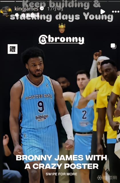 北京时间昨日,布朗尼在NBA G联盟的一场比赛中高效拿下28分6板2助1断。赛后,詹姆斯更新社媒对此表示称赞。