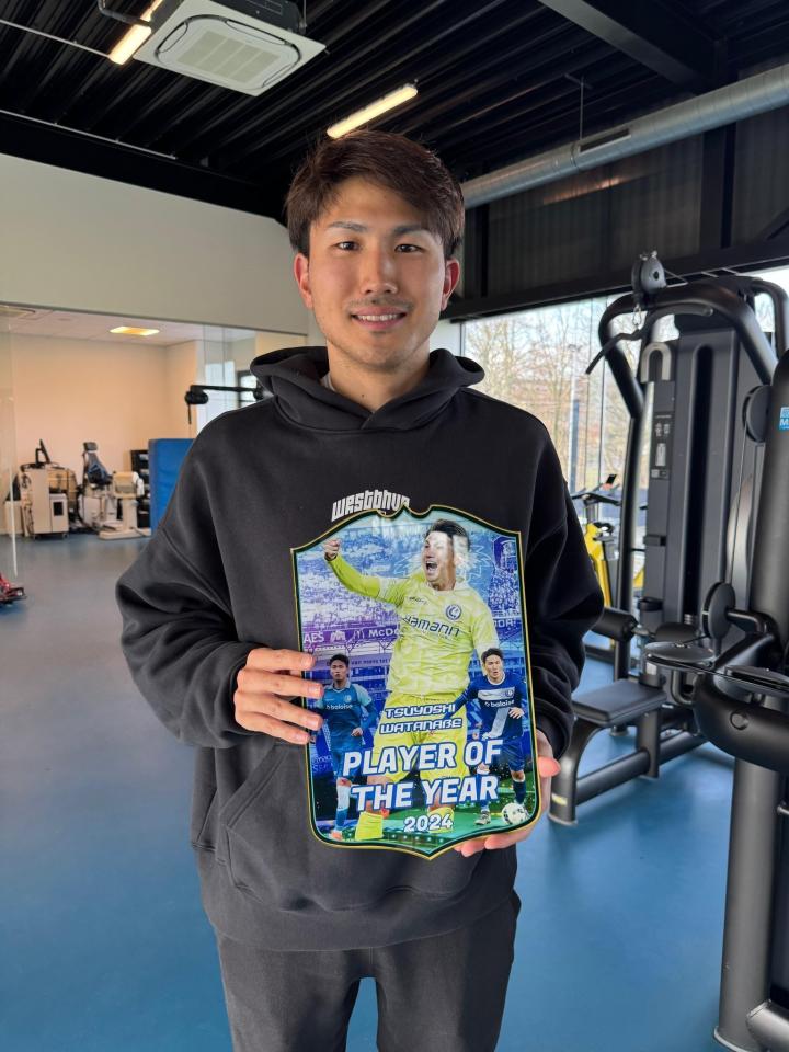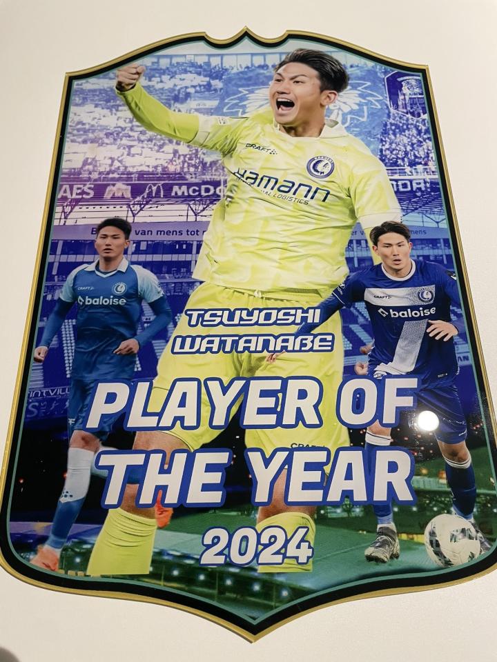 北京时间2月9日,日本后卫渡边刚晒出了自己当选比甲根特队2024年度最佳球员的照片。