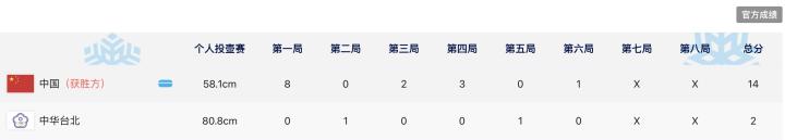 2月9日,亚冬会女子冰壶循环赛,中国队14-2击败中国台北队,取得两连胜。