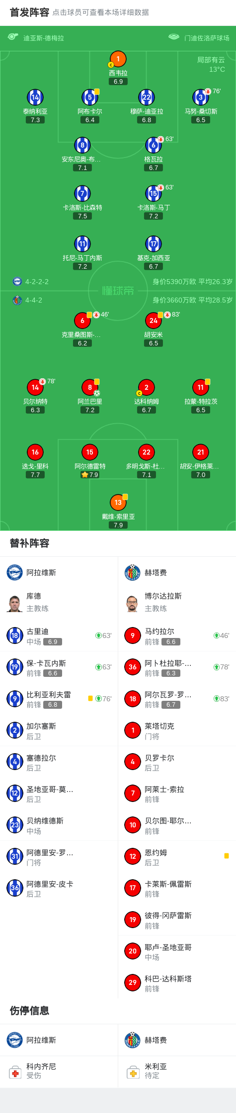 赫塔费客场1-0小胜阿拉维斯,阿兰巴里点射制胜战报bot @懂球帝2025-02-09 22:56在西班牙足球甲级联赛第23轮的较量中,阿拉维斯坐镇主场迎战赫塔费。比赛中,赫塔费的阿兰巴里成功罚入点球,为球队取得领先。最终,赫塔费凭借这一进球,以1比0战胜阿拉维斯,取得了比赛的胜利。点击查看本场比赛详细数据>>点击查看西甲完整积分榜>>精彩瞬间第44分钟,赫塔费球员阿兰巴里罚入点球。 球队阵容 技术统计 展开更多