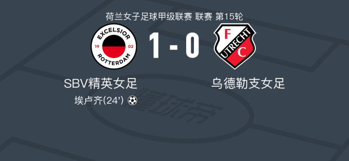 SBV精英女足1-0乌德勒支女足,埃卢齐一击制胜
