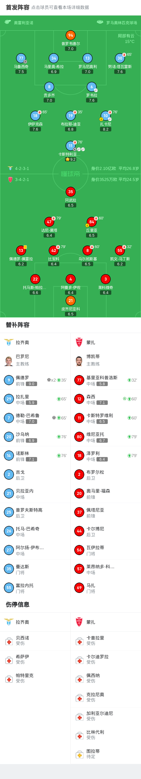 在意大利足球顶级联赛第24轮的比赛中,拉齐奥坐镇主场迎战蒙扎。比赛中,拉齐奥展现了强大的进攻实力。首先,卡斯特利亚诺斯为马鲁西奇送出精妙助攻,帮助球队取得领先。随后,卡斯特利亚诺斯再次送出助攻,这次是佩德罗将球送入网中。紧接着,扎卡尼助攻卡斯特利亚诺斯,后者也成功破门。比赛接近尾声时,诺斯林助攻佩德罗完成梅开二度。蒙扎方面,森西通过点球为球队扳回一城。然而,拉齐奥并未停止进攻,罗韦拉助攻德勒-巴希鲁再下一城。最终,拉齐奥以5-1的大比分战胜蒙扎,取得了一场酣畅淋漓的胜利。