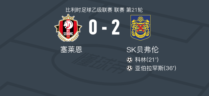 SK贝弗伦2-0塞莱恩,科林破门,亚伯拉罕斯锁定胜局