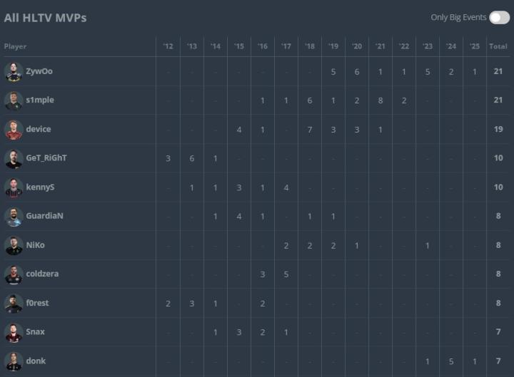 超越仅时间问题?ZywOo获职业生涯第21个MVP奖牌,追平s1mple