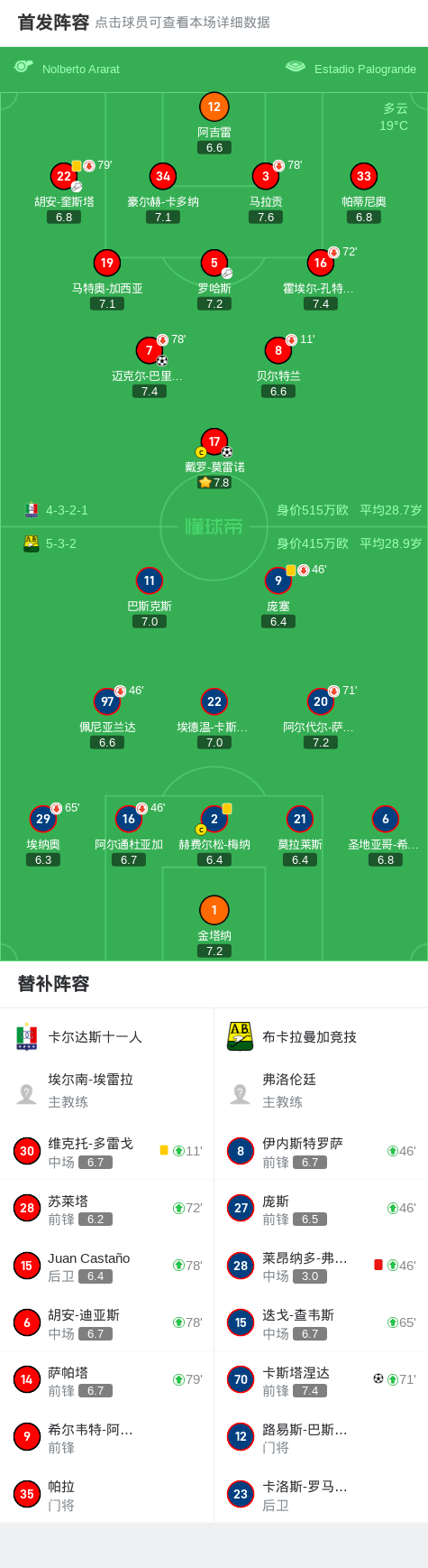 卡尔达斯十一人2-1布卡拉曼加竞技,戴罗-莫雷诺、迈克尔-巴里奥斯破门