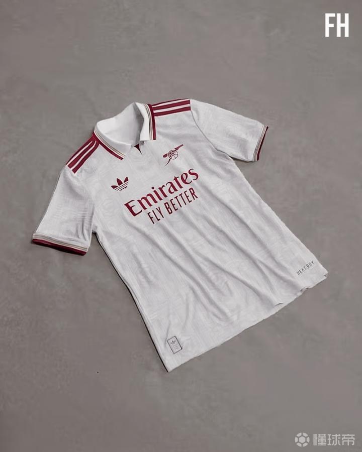 阿森纳25-26赛季第三球衣设计泄露,纯白底色搭配红色装饰