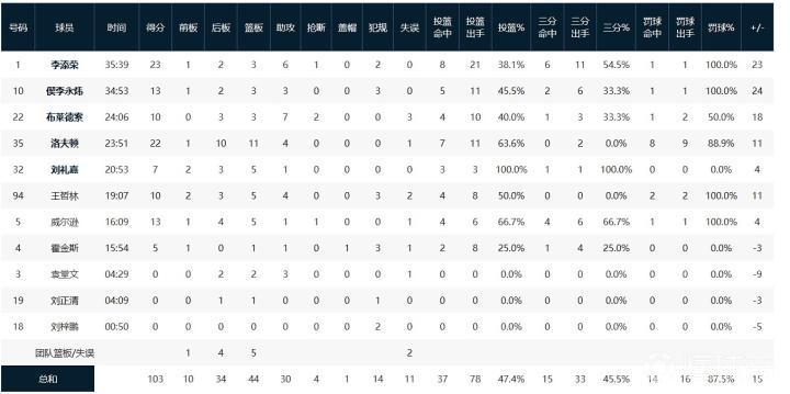 上海久事李添荣23分3板6助,洛夫顿22分11板4助,王哲林10分5板4助;