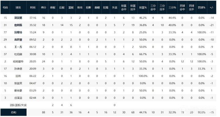 天津先行者哈姆雷特24分1板8助,大卫-詹姆斯18分15板2助,郑昊燃16分3板2助。