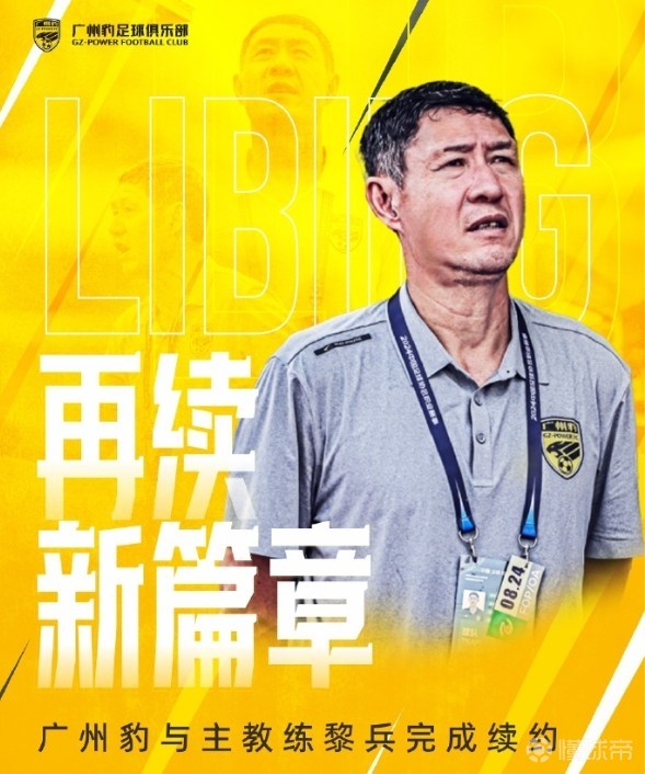 官方:广州豹与主教练黎兵完成续约;上赛季他率队夺中乙冠军