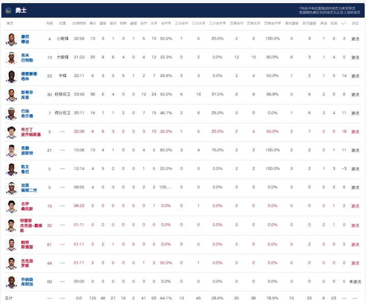 第四节,开节雄鹿库兹马、特伦特联手得分追至2分分差,随后雄鹿进攻持续哑火,勇士波斯特、库里联手5记三分将分差拉大至18分,比赛收尾段雄鹿利拉德连续得分反扑无果,最终雄鹿111-125不敌勇士。
