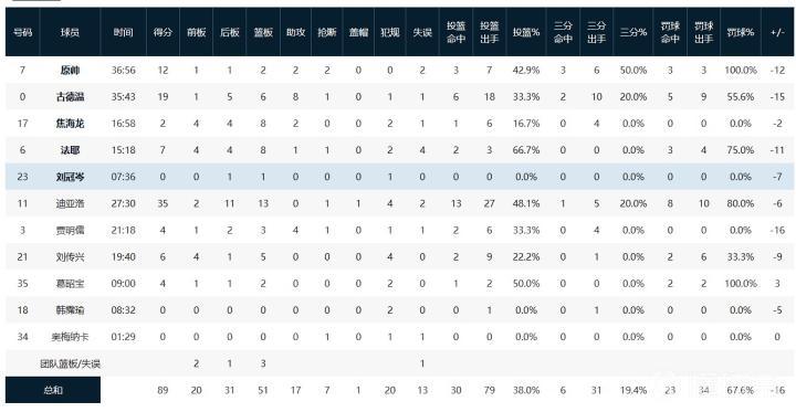 山西汾酒迪亚洛35分13板,古德温19分6板8助,原帅12分2板2助。