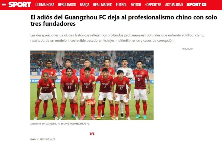 北京时间2月11日,《每日体育报》发表文章,报道了广州队解散的情况,并且分析了中国职业足球联赛的问题。