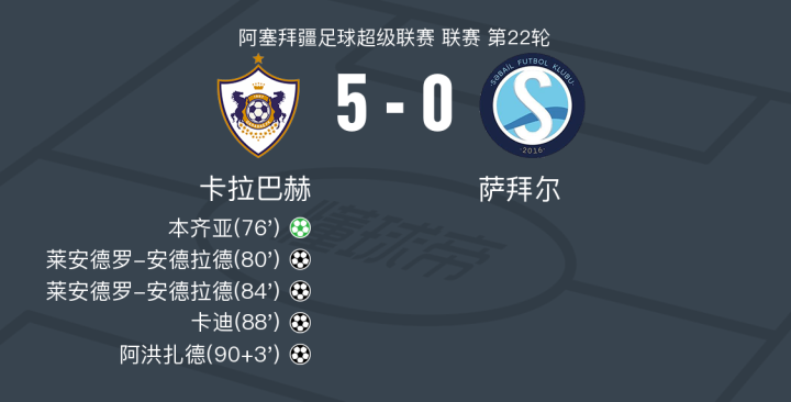 卡拉巴赫5-0狂胜萨拜尔,莱安德罗-安德拉德梅开二度,阿洪扎德破门