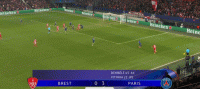 第21分钟,登贝莱造米卢禁区手球,维蒂尼亚点射命中,巴黎1-0布雷斯特