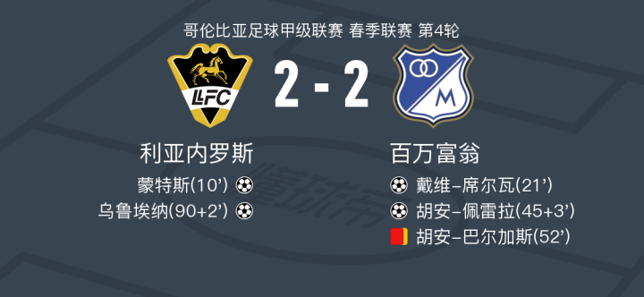 利亚内罗斯2-2百万富翁,蒙特斯破门,乌鲁埃纳救主