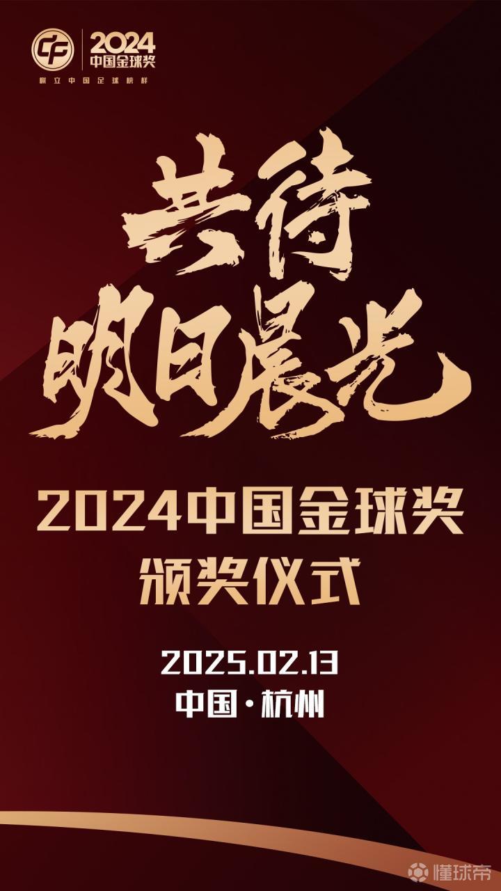 2024中国金球奖颁奖仪式将于北京时间2月13日14:00进行,懂球帝将在APP端以及抖音、快手懂球帝账号全程直播!