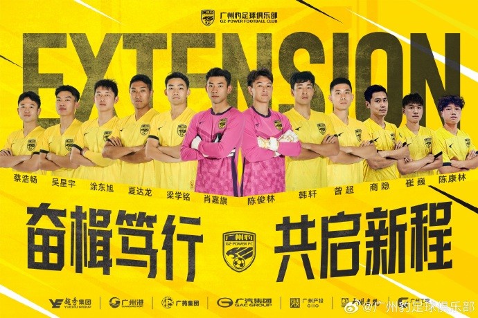 官方:广州豹与梁学铭、曾超在内的十二名球员完成续约