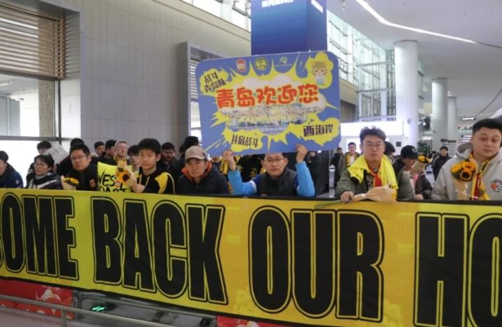 正月十五的青岛胶东国际机场格外热闹,青岛西海岸球迷自发组织抵达现场,迎接球队冬训归来。青岛西海岸队全体教练员、运动员、工作人员与球迷们完成了一次“大团圆”。