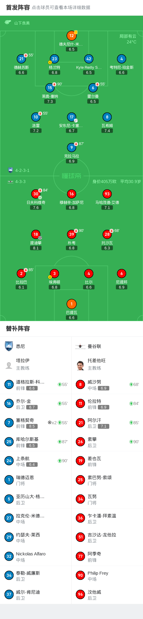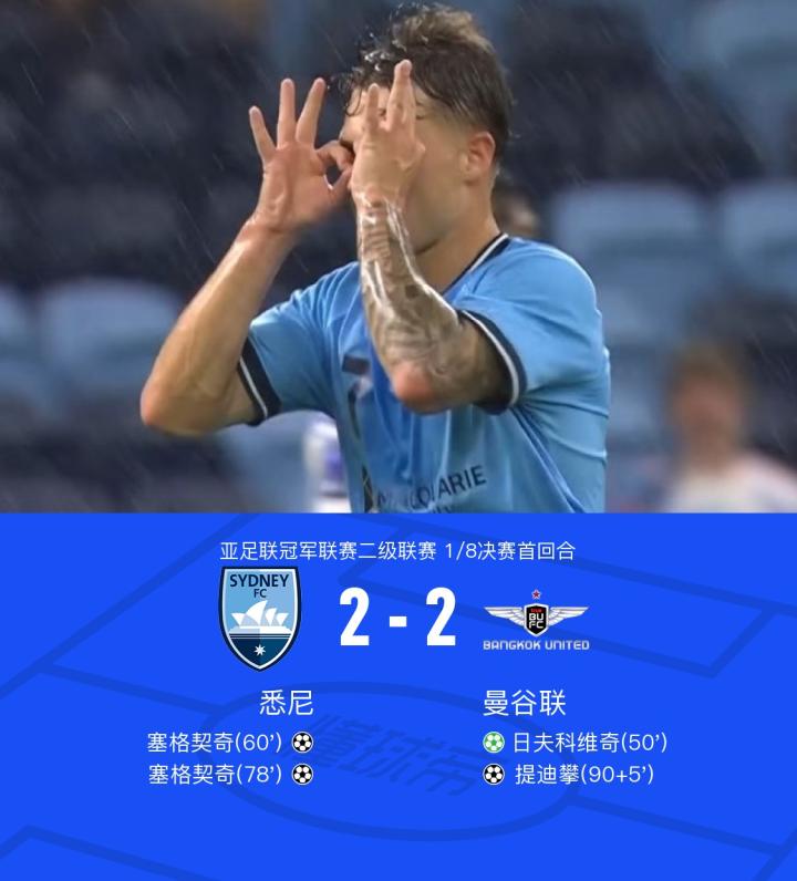 首回合悉尼2-2曼谷联,塞格契奇梅开二度,提迪攀绝平