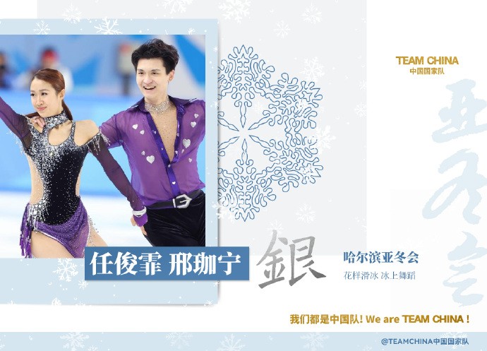 2月12日,亚冬会花样滑冰冰舞自由舞结束,任俊霏/邢珈宁拿到银牌,并获得世锦赛的参赛资格。肖紫兮/何凌昊排名第四。