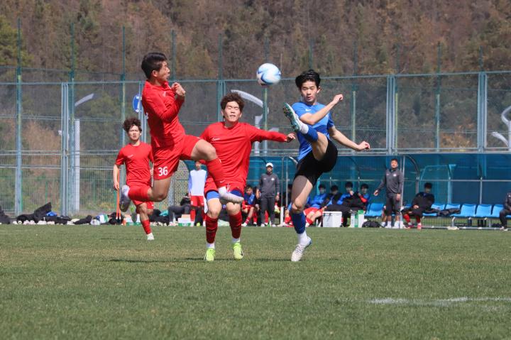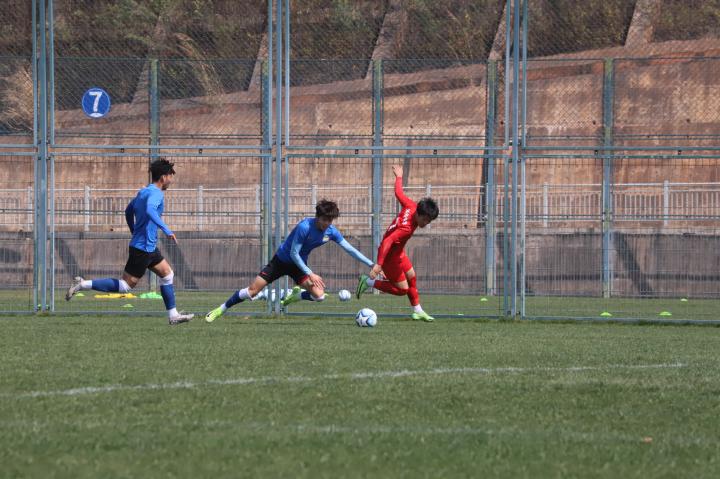2月12日下午,河南U18全运队与河南U19梯队的比赛打响。虽然是两支河南队之间的教学赛,但比赛过程十分激烈,对抗程度丝毫不亚于正式比赛,双方球员踢得都十分投入,很好的贯彻了各自教练组的战术安排。