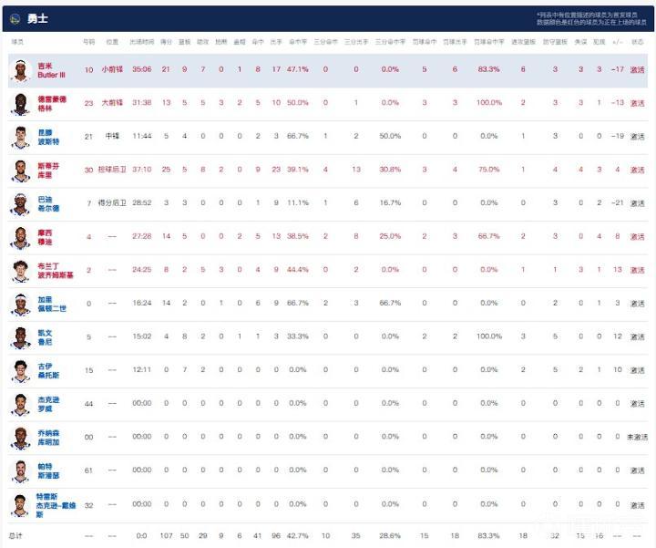 金州勇士斯蒂芬-库里25分5板8助,吉米-巴特勒21分9板7助,格林13分5板5助,穆迪14分5板。