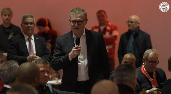 在欧冠淘汰赛附加赛首回合的较量中,拜仁2-1战胜凯尔特人。赛后,拜仁CEO德雷森在宴会上发表了讲话。