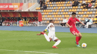 第7分钟,金世镇右路突破后小角度射门,将球踢偏