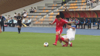 第30分钟,穆斯林-穆萨精准铲球,碰到朝鲜队球员后出底线
