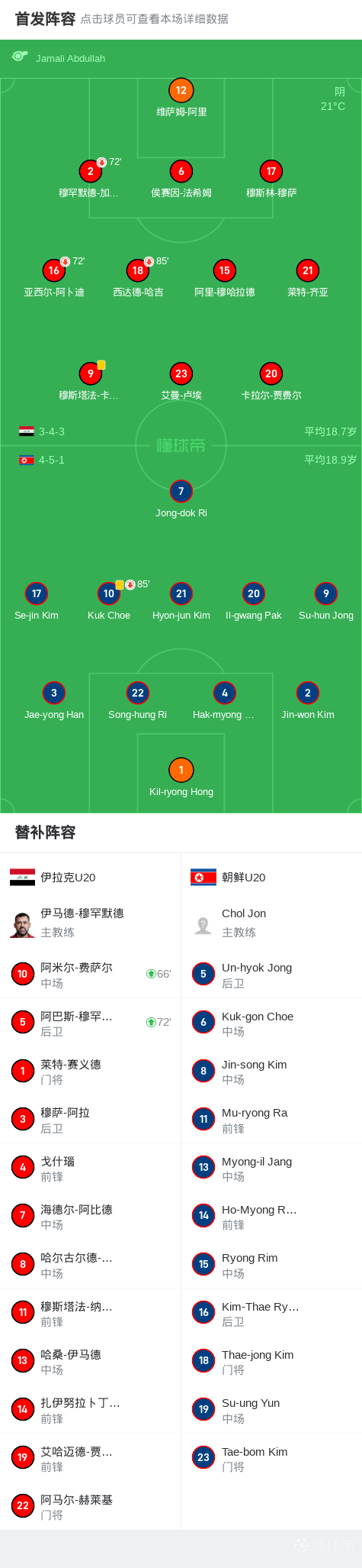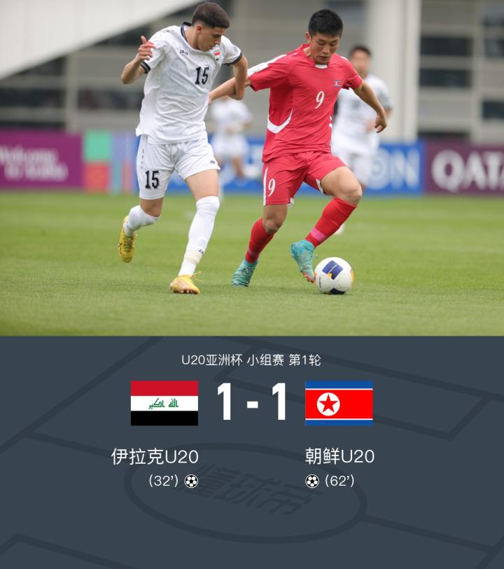 U20亚洲杯:伊拉克1-1朝鲜,卢埃破门,Jin-song Kim扳平比分