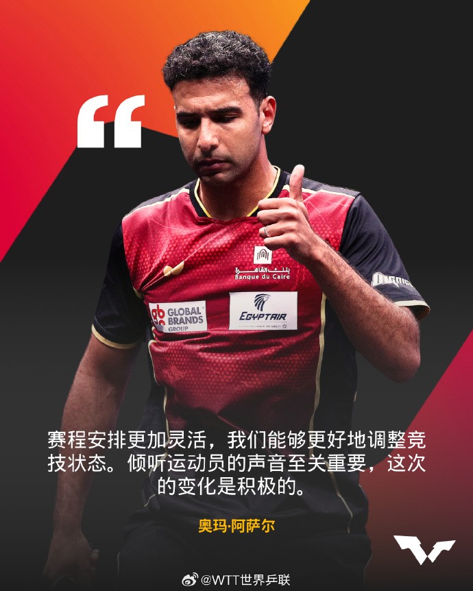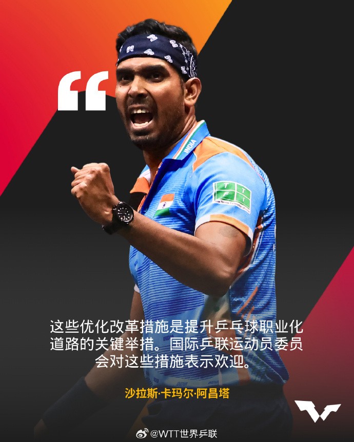 沙拉斯-卡玛尔-阿昌塔:“这些优化改革措施是提升乒乓球职业化道路的关键举措。国际乒联运动员委员会对这些措施表示欢迎。”