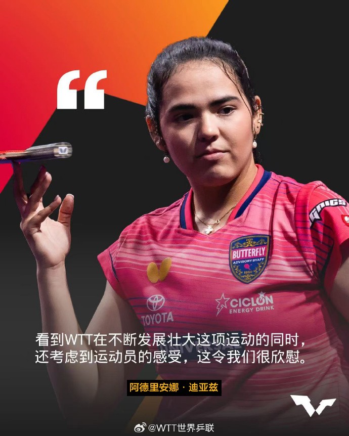 阿德里安娜-迪亚兹:“看到WTT在不断发展壮大这项运动的同时还考虑到运动员的感受,这令我们很欣慰。”