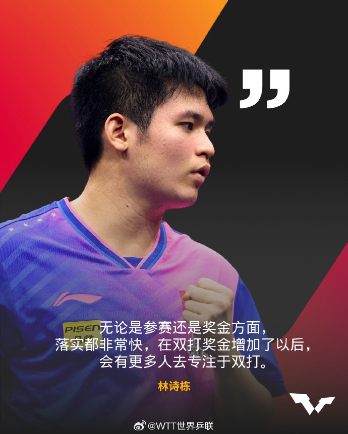 林诗栋:“无论是参赛还是奖金方面落实都非常快,在双打奖金增加了以后,会有更多人去专注于双打。”