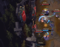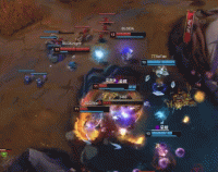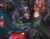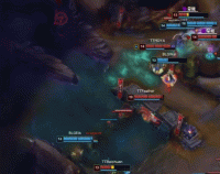 第16分钟,中路一波混战,BLG下路双人组找到机会成功击杀1xn,双方队友全TP中路支援,,TT打出1换4团战,SeTab斩获四个人头,9-11。