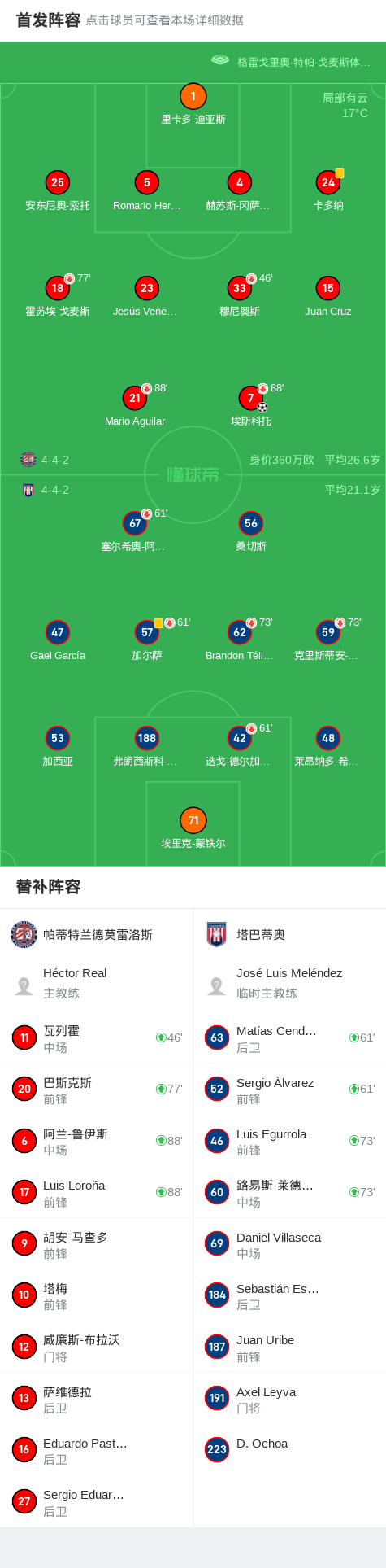 帕蒂特兰德莫雷洛斯1-0塔巴蒂奥,埃斯科托一击制胜